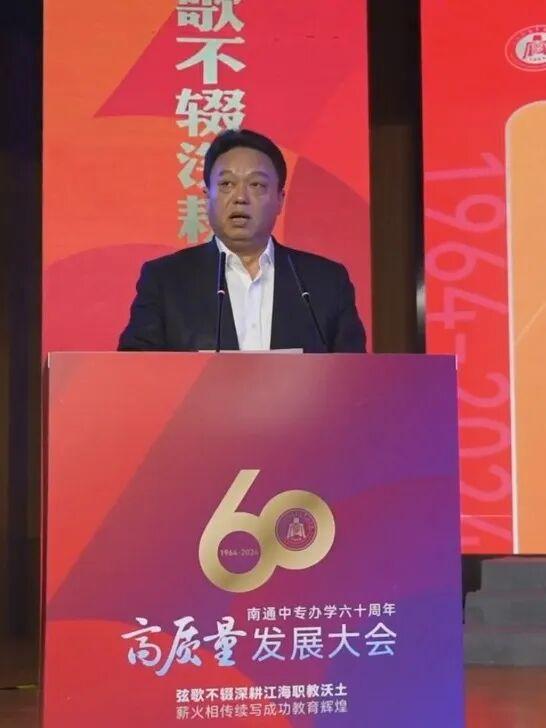 60年的春风化雨成就中专桃李芬芳,薪火相传,续写成功教育辉煌,由李明生书记作高质量发展报告。再由南通市政府副市长于立忠市长讲话。于市长的讲话也为学校发展明确了目标,