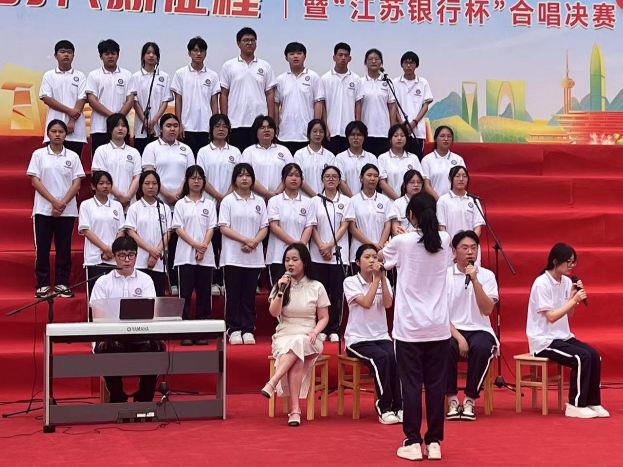 听优美的歌声把我们从颁奖的喜悦中拉了出来。老师同学们沉浸在歌声当中。其中最让人有深刻印象的是《少年中国说》,给观众呈现了一位一腔热血的少年。在一首首充满爱国的歌中净化了我们的心灵,使我们沉浸于音乐的美妙之中,激发起了我们的爱国情怀。