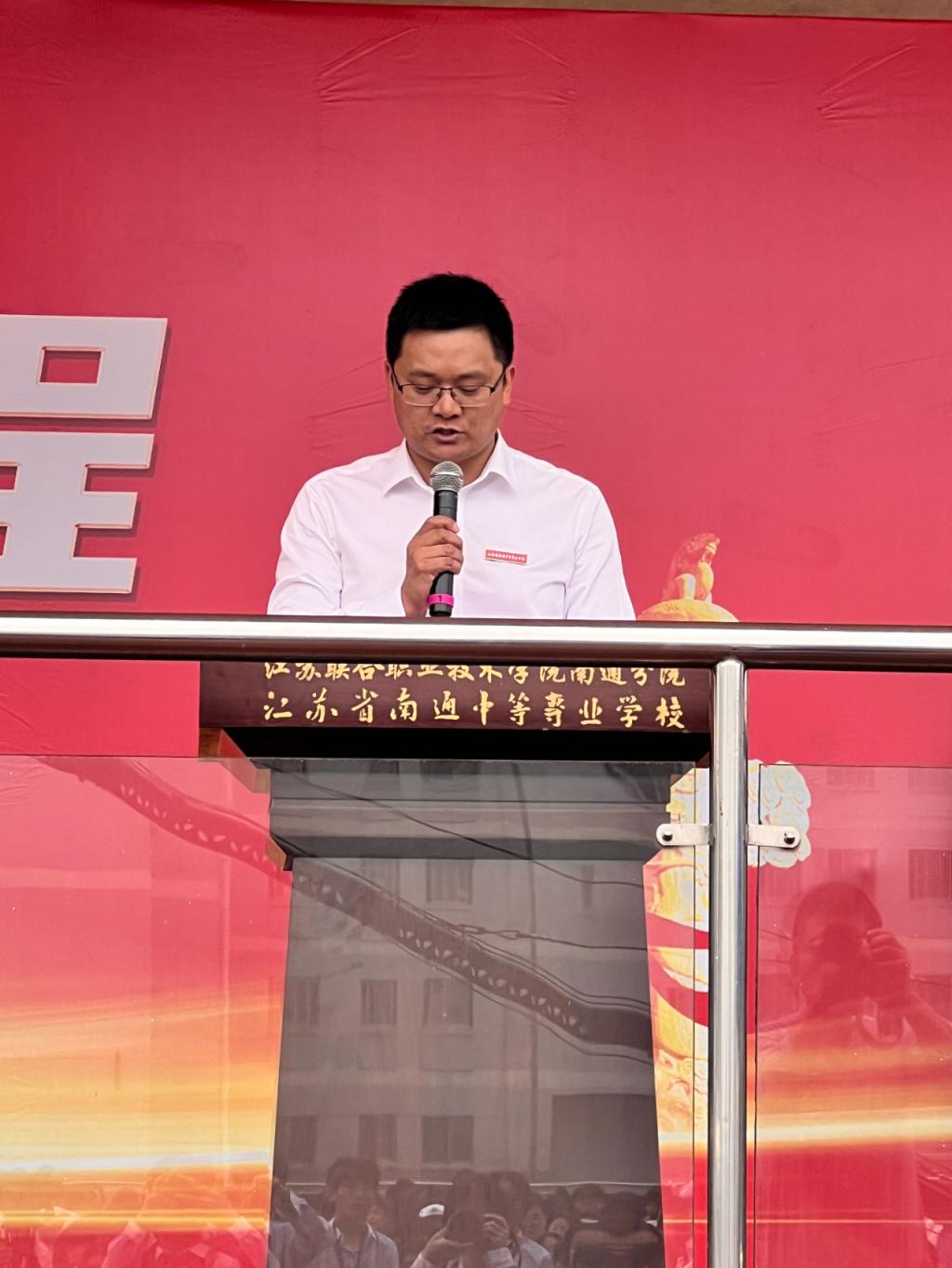 李明生书记首先代表学校党委和行正向全校师生致以节日问候,对受表彰集体与个人表示诚挚祝贺。随后宣布了第十二届“成功教育”学生先进典型,各位领导为他们领奖,他们在主席台上拿着证书的样子,是多么的先彩夺目,他们是我们南通中专学子们的榜样。